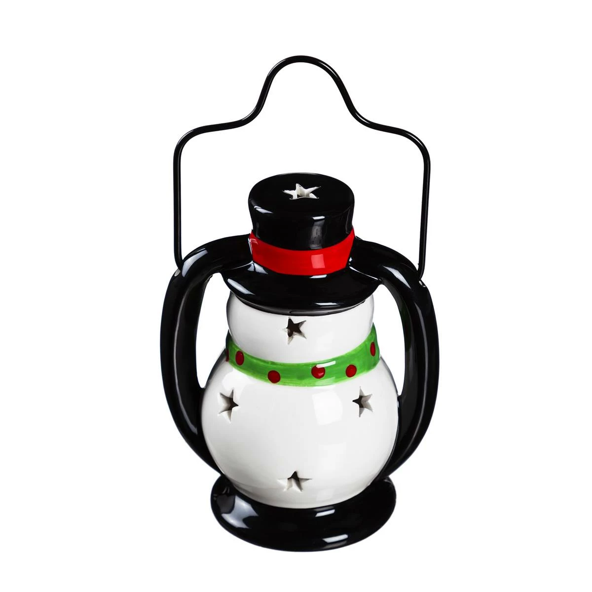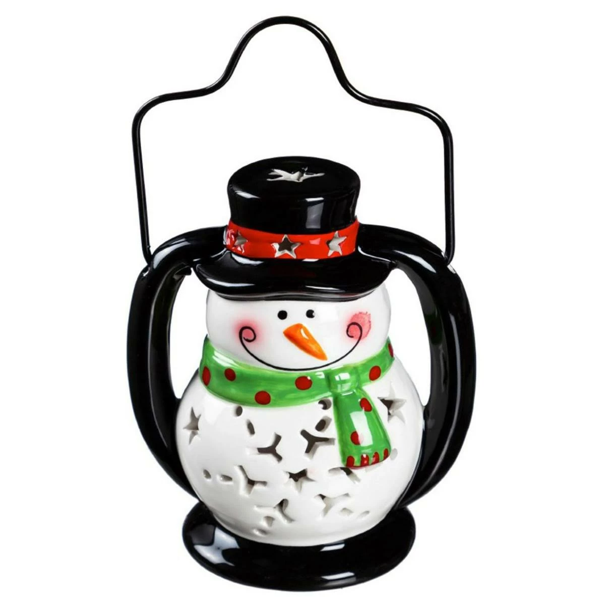 Bring in the holiday season with the Evergreen ceramic snowman lantern that will brighten your home or garden, or make a great gift for your loved ones. It is battery-operated and features LED color-changing settings.