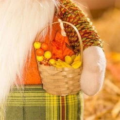 Celebrate the fall season in whimsical style with this Evergreen plush harvest gnome. The festive creature makes a charming addition to countertops, coffee tables, mantels, and more. Wearing patchwork attire with stitched details, this gnome has a rustic and homemade appeal. His hat is adorned with fall leaves, while, in his hand, he holds a woven basket filled with autumnal accents. Spread smiles with this gnome that is perfect for any indoor space that needs an extra dose of fall magic.