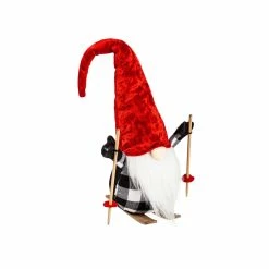 This festive gnome from Evergreen is ready to hit the slopes! Donning a vibrant red hat, it comes equipped with skis, ski poles, and a fluffy white beard. This seasonal decoration will add a whimsical touch and show off your fun personality during the holidays. Showcase on a tabletop or mantel as a wintry accent that will make your indoor decor look stunning all season long. Made of textile, wood, and stone. Size: 20H x 10W x 7D.