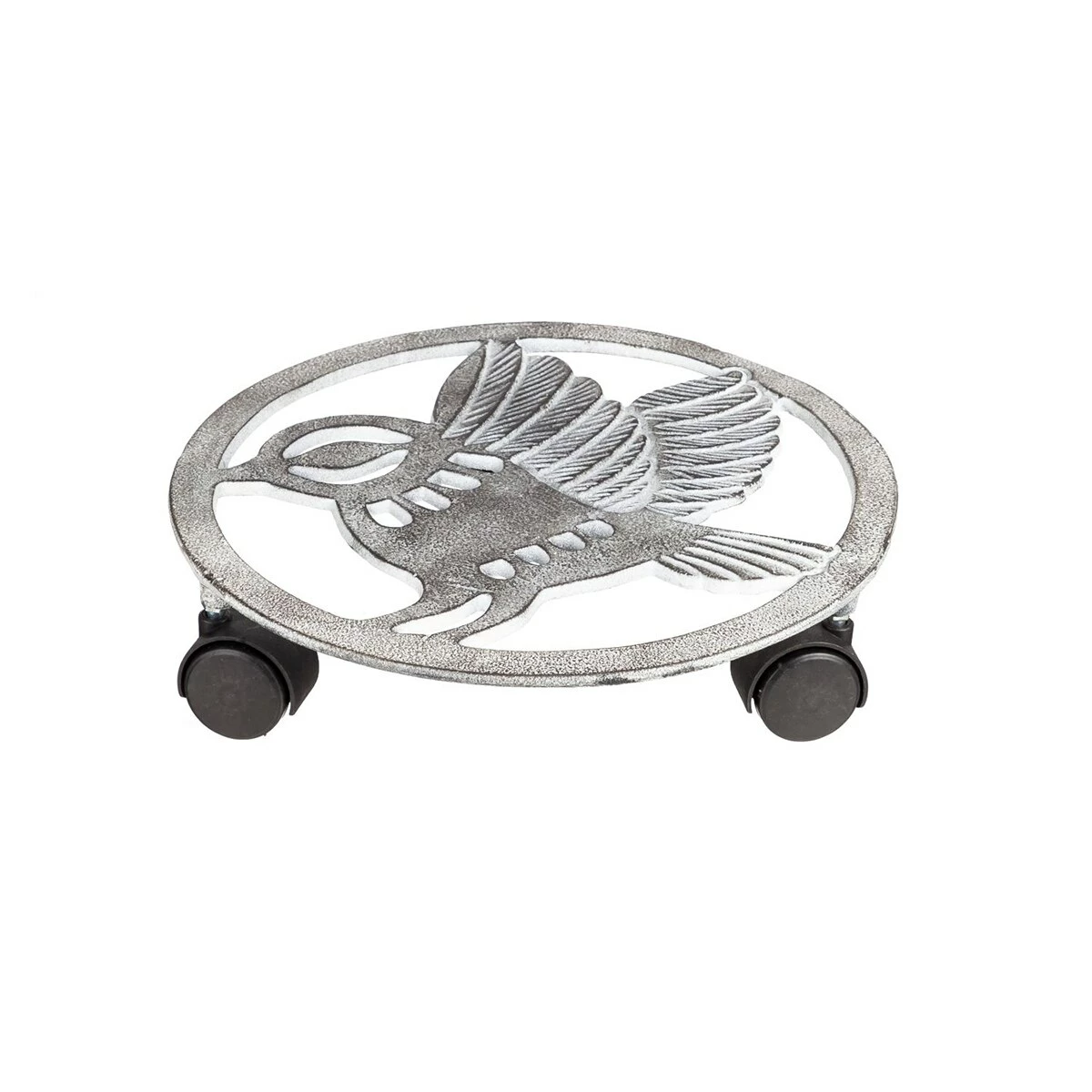 This stunning Evergreen Evergreen 11.5-inch white metal bird plant trolley will look gorgeous in your outdoor space. It features a distressed bird design. The white metal coloring of this charming plant tray shines and sparkles in the sunlightLimited Manufacturer’s Warranty.