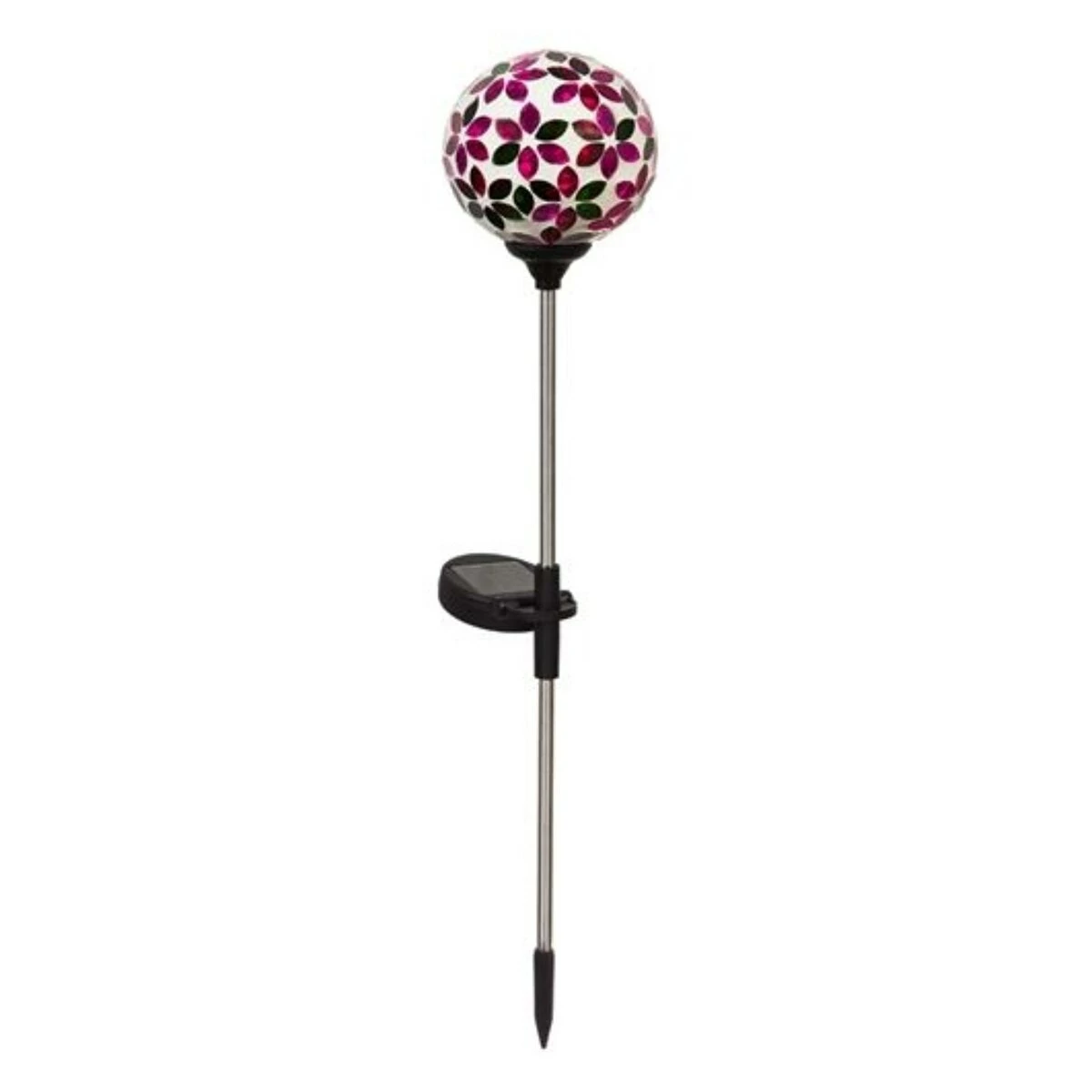 This Evergreen 22-inch solar mosaic red and purple globe garden stakes is sure to brighten up your garden! Made of sturdy metal for long-lasting use, its sure to delight family and guests alike.Limited Manufacturer’s Warranty.