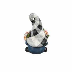 This cheerful gnome statuary from Evergreen adds extra pizzazz to gardens, porches, and more with its plaid hat and blooming red flowers. Buffalo plaid has been a trending favorite, and this character’s hat adds a charming touch to this design. Display the gnome on a shelf, mantel, porch, garden, and more!