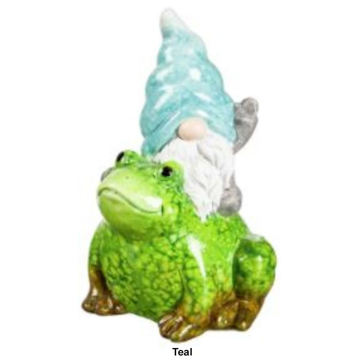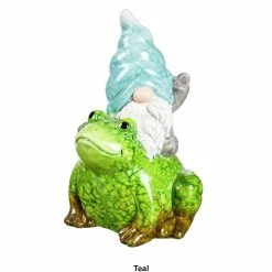 This Evergreen 8-inch traveling gnome and garden friends statuary adds a charming touch to any outdoor space and creates a fun scene in your garden or flower bed. Riding atop a turtle and donning a yellow hat, this garden friend has a glazed finish and colorful speckled details that add to its whimsical appeal.Limited Manufacturer’s Warranty.