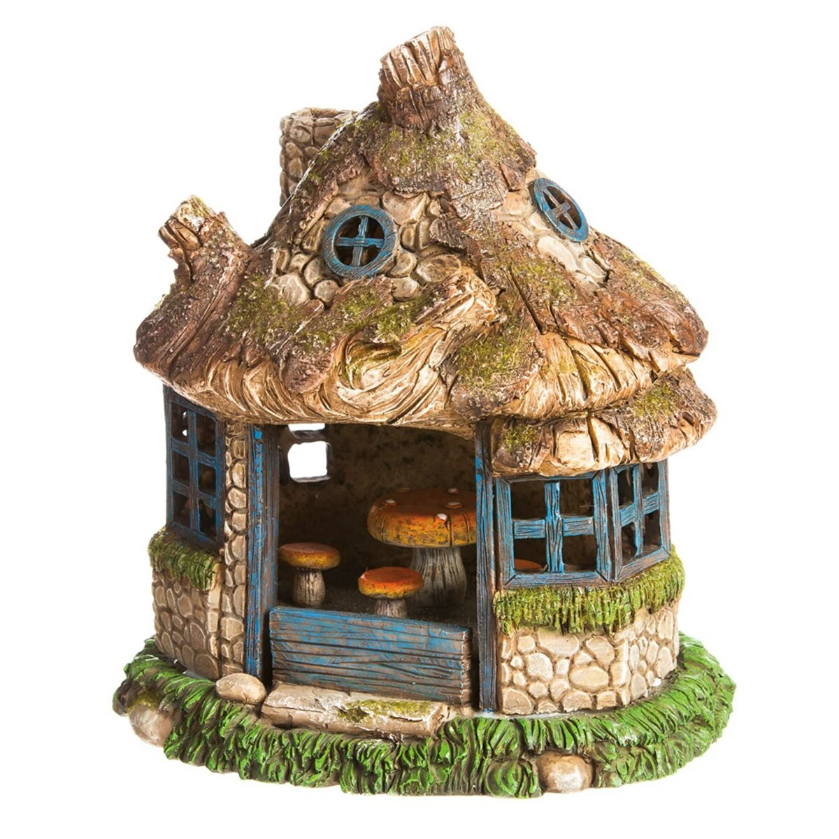 Give the fairies a place to stay with this Evergreen A View in the Village lighted fairy house. This tree stump home has a red sign above the door that says, “Gnome house.” The outside lantern and windows glow at night with a light from a solar panel on the back.Limited Manufacturer’s Warranty.