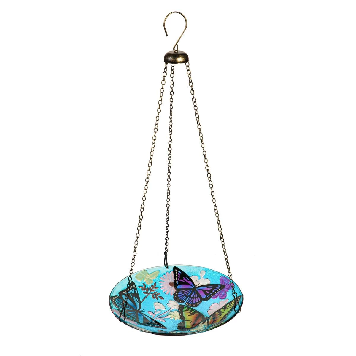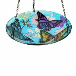 This Evergreen hanging butterfly designed birdbath is eye-catching. With its beautiful butterfly design, not only will this birdbath attract birds, but everyone’s attention who sees it. Easily hang with its C ring hook to a tree or somewhere easily accessible.
