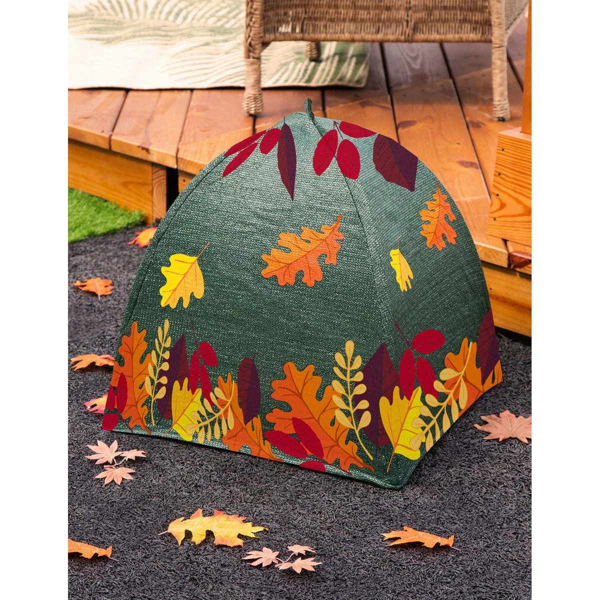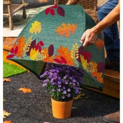 Featuring vibrant autumn leaves, this Evergreen Fall Leaves tented plant cover is a perfect garden accessory for the fall season. The unique design of this plant cover provides a fun and festive way to protect plants from harsh autumn weather. Crafted from outdoor safe poly-canvas material, this functional outdoor decoration is made to withstand the elements. Measuring 22 inches tall, the plant cover can also be placed over different objects in your yard or rocks that can’t be moved.