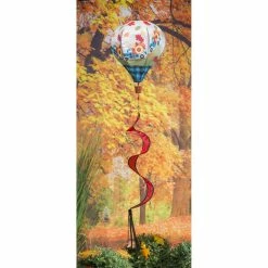 Add a touch of fall charm and movement to your outdoor space with this Evergreen fall plaid truck animated burlap balloon spinner. Ride into the new season in a blue plaid pickup truck with autumn leaves falling against a wood fence background. Easily hang this balloon spinner to add a lively element to any outdoor area, and watch as the design dances and twirls in the wind for a stunning visual show. Made of durable, weather-resistant burlap, this outdoor accent boasts a unique hot air balloon shape. Evergreen’s balloon spinners have a mesh panel and spiral tail that keeps the design in motion after the wind blows. A plastic spring mechanism locks into place to secure the design during windy conditions.