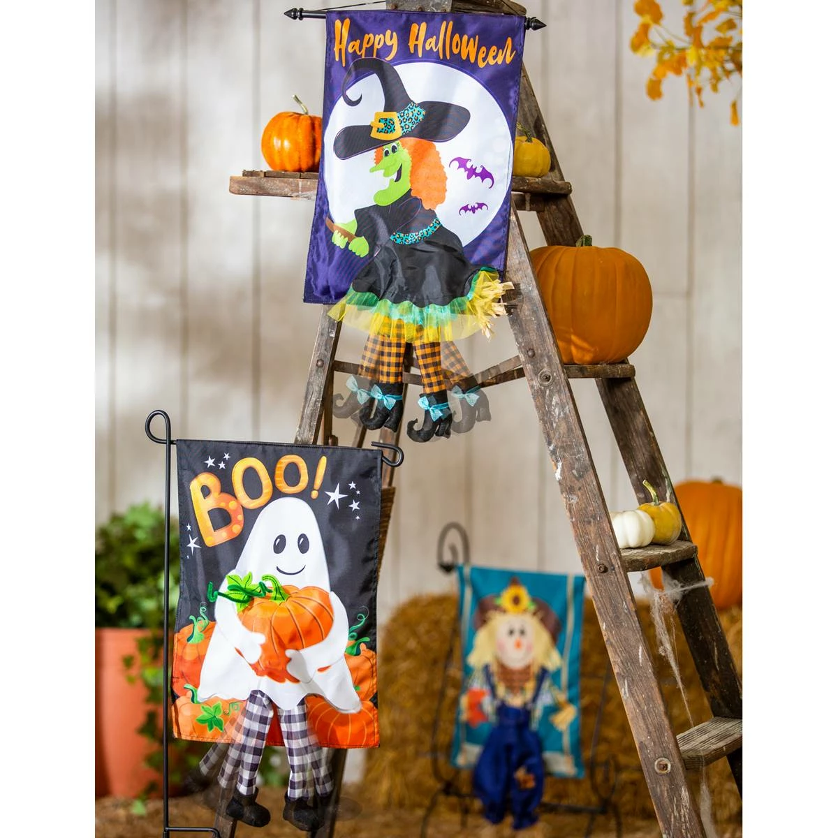 This Evergreen Ghost Garden Kickin Flag adds an extra dose of fun to Halloween decor. Things have been kicked up a notch with the new animated garden flags! Sound activates the battery-powered legs on these favorite characters, adding motion and whimsy to any decor. These double-sided designs are bound to bring a jolt of fun to entryways, gardens, and more.
