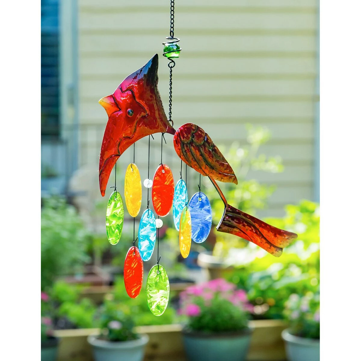 This Evergreen glass and metal cardinal icon wind chime will brighten up your garden! Made of sturdy metal and glass for long-lasting use this wind chime is sure to delight family and guests alike.Limited Manufacturer’s Warranty.
