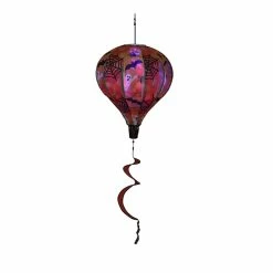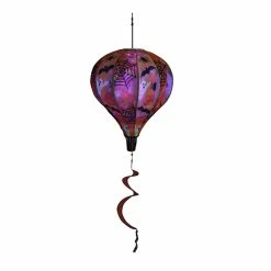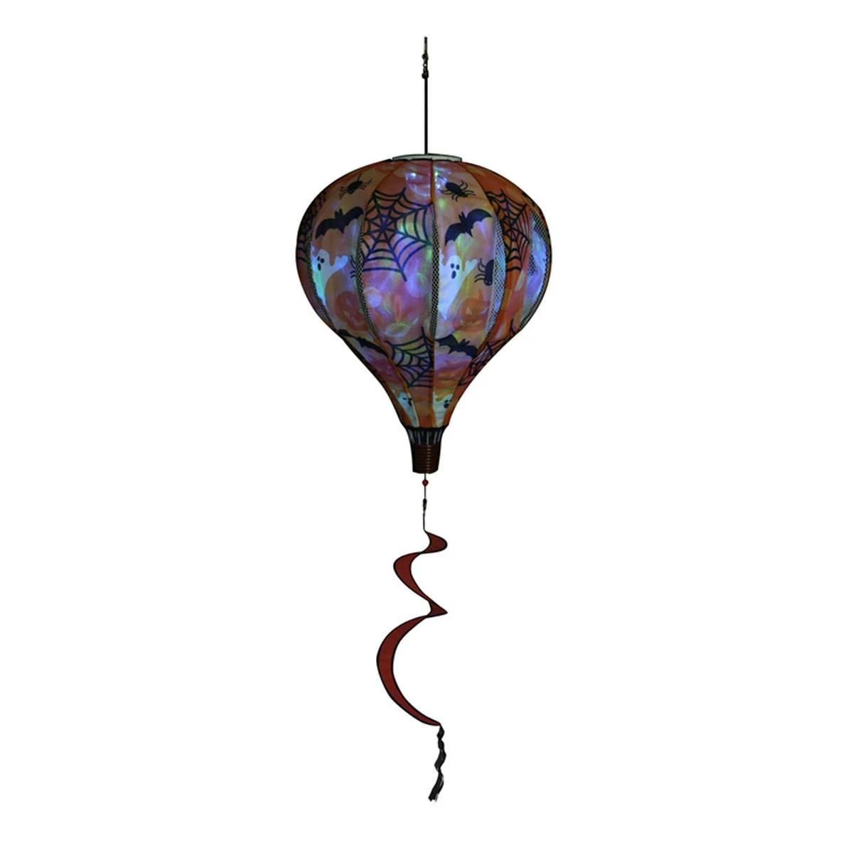 Mesmerize trick-or-treaters from near and far with this Evergreen Halloween Print Solar Balloon Spinner. This decorative accent comes to life in more ways than one as it twirls at the touch of a breeze and then begins to glow as day turns to night. The design features spooky details, including bats, spiders, and ghosts in classic Halloween colors. The spinner takes on the unique form of a hot air balloon, making it the perfect eye-catching decorative accent. Designed to easily hang in your garden or on your patio or porch. At dusk, watch as the design turns on and changes colors! Allow the spinner to get at least 6 hours of direct sunlight for a full charge. The perfect decorative accent to get you and your family in the spooky spirit for Halloween.