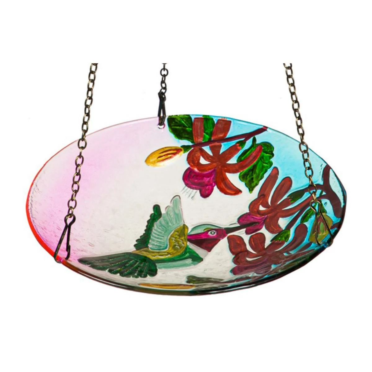 This Evergreen hanging hummingbird designed birdbath is eye-catching. With its beautiful design, not only will this birdbath attract birds, but everyone’s attention who sees it. Easily hang with its C ring hook to a tree or somewhere easily accessible.