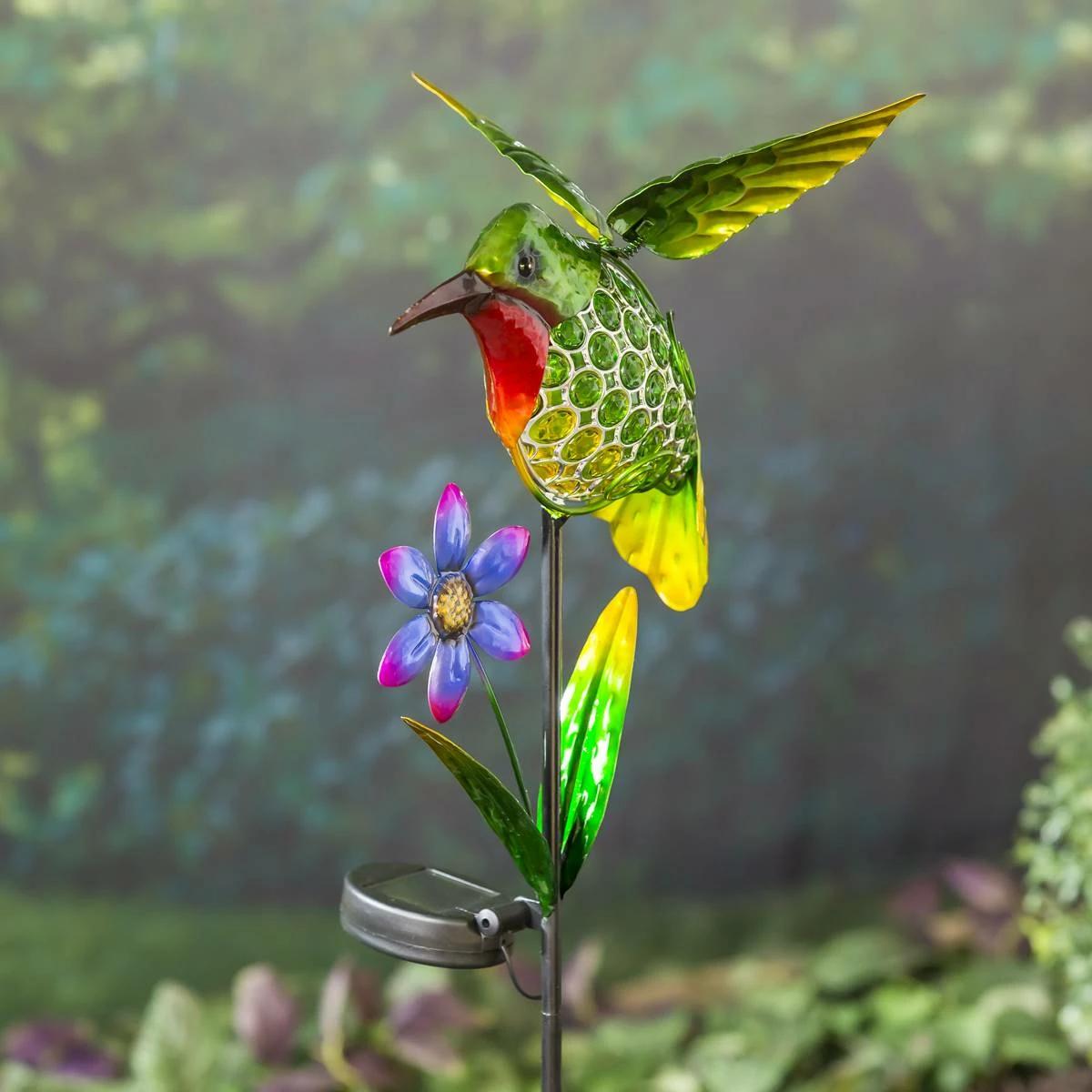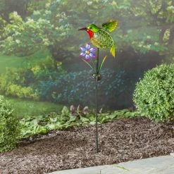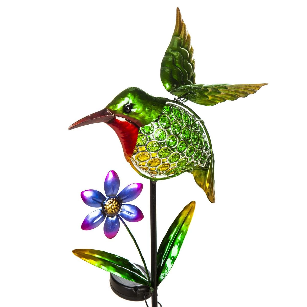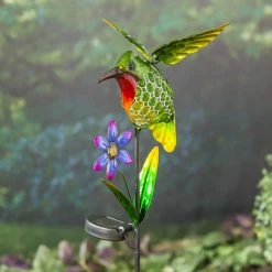 Hummingbirds can be a symbol of good fortune, making this Evergreen Hummingbird solar garden stake your new good luck charm. The details and design of the Hummingbird atop this stake will make a striking statement in your garden or yard. Entails a picturesque Hummingbird resting on a branch with floral embellishments. Adds a splash of color and brings out the best of your creative personality. Allow the stake to get 6 hours of direct sunlight to ensure a full charge. When fully charged, the stake should stay lighted for 6-8 hours.