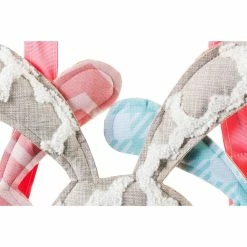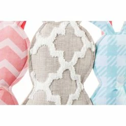 Welcome spring guests in style with this pattern bunny trio door decor from Evergreen. Perfect for the spring season and Easter, the textured patterns and pom pom tails bring the piece to life. Each piece is carefully crafted from durable and fray-resistant polyester burlap. The coordinating hanger ribbon is wired to prevent the door decor from twisting.