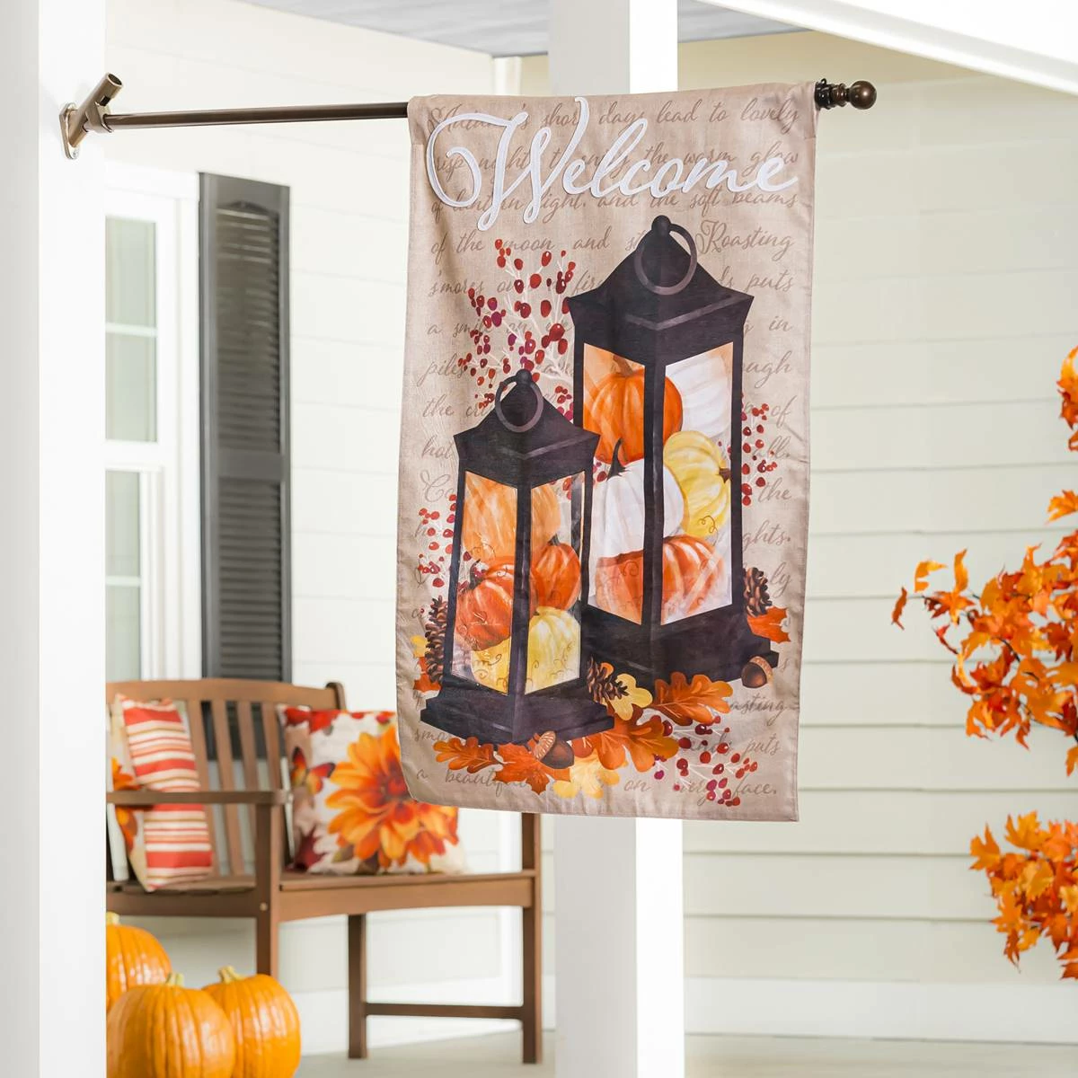 With its elegant harvest design, this Evergreen pumpkin lantern house burlap flag adds a charming touch to any outdoor space. The muted colors and embroidered details create a stunning sight. Part of our Burlap Boutique Collection, this flag is made of medium-weight, soft polyester burlap fabric that has the look and feels of real burlap. Artwork is heat transferred onto both sides of the textured fabric to create a natural, crafted look. The poly-burlap is a durable and weatherproof material that will not fade or fray after continued use.