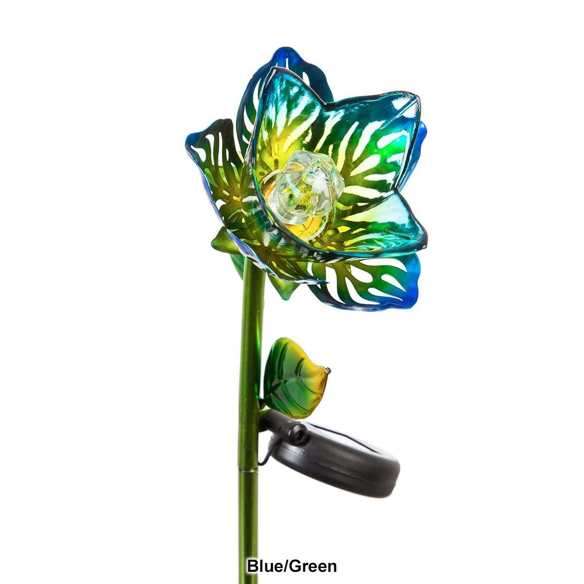 This Evergreen solar glass and metal flower plant pick is sure to be a hit in your home or garden! Simply place in sunlight and watch as a festive floral design lights up at night.Limited Manufacturer’s Warranty.